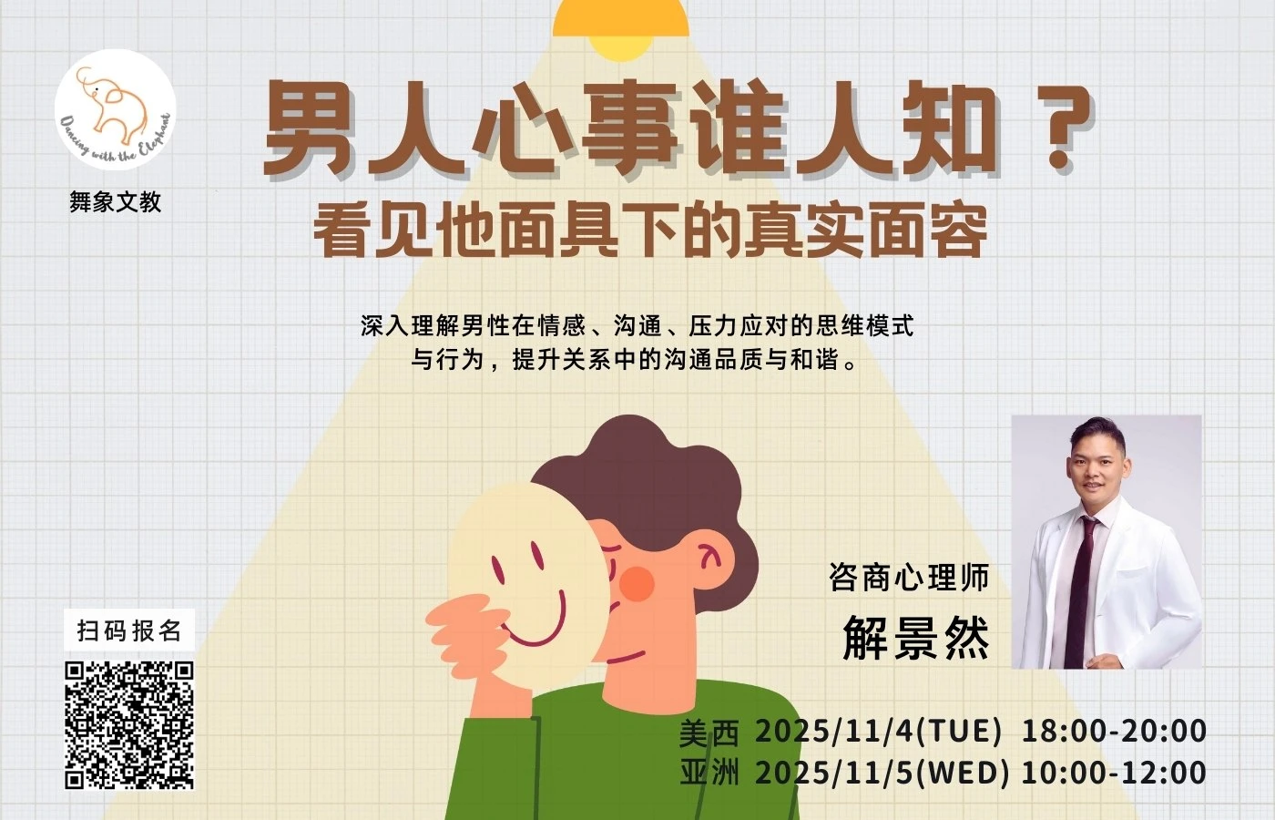 透过心理学,深入地理解男性在情感、沟通、压力应对等方面的思维模式与行为,从而提升在家庭关系与亲密关系中的沟通品质与和谐。